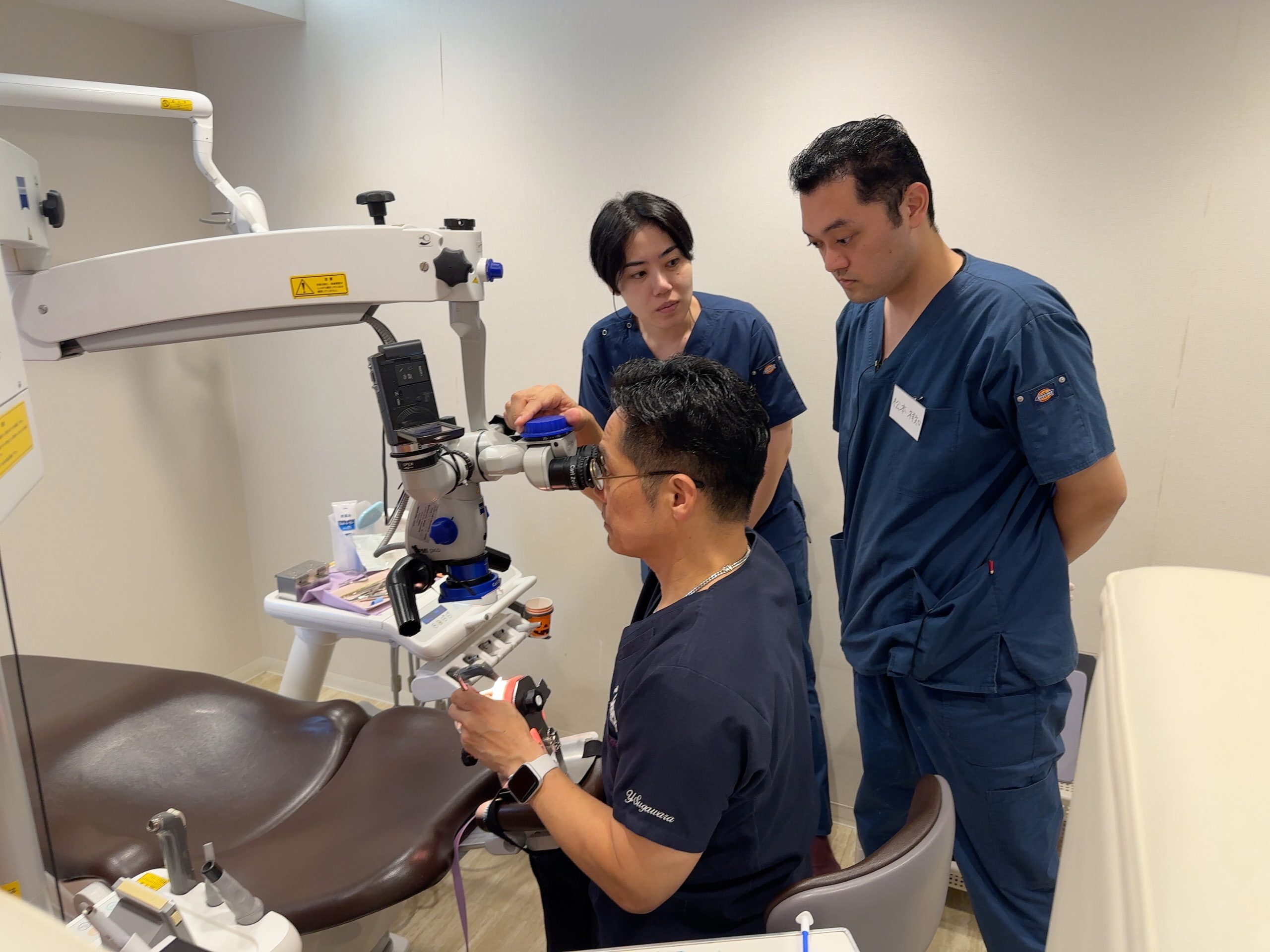 研修医の方も最初から、マイクロスコープを使っての治療を学んで実践して頂きます。当法人には31台のマイクロスコープがあります。